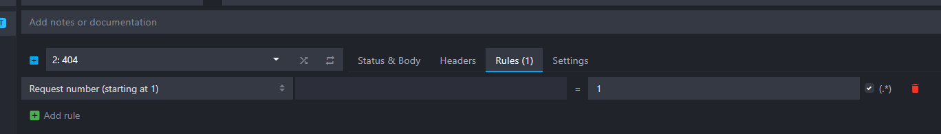 A new type of rule has been created to allow you to serve a specific response depending on the entering request number. In the following example, a 404 would be served at the first request only.