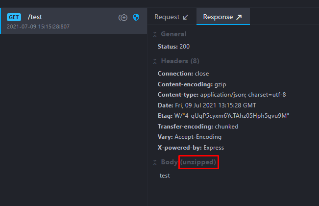 To make debugging easier, compressed bodies received from proxied APIs are now automatically decompressed and displayed in clear in the logs page: