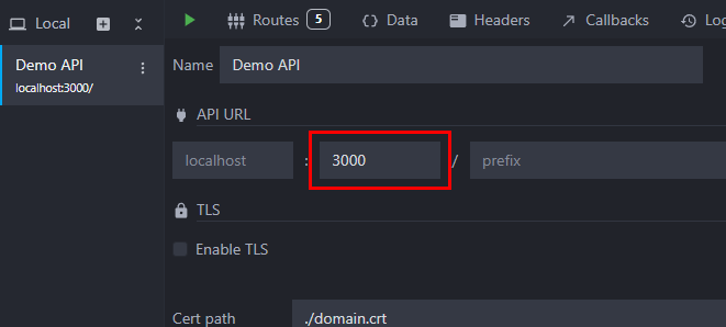 By default, Mockoon's new environments will listen on port 3000 and will have no API prefix. If you have multiple environments already opened, Mockoon will automatically increment the port number for each new environment.