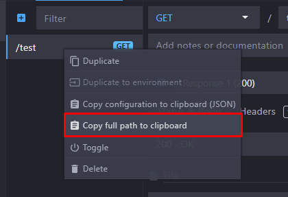 A new context menu entry is available to copy the full API endpoint path: