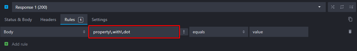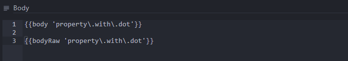 Properties with dots are now supported in the body and bodyRaw templating helpers and in the rules. Escape the dots when you want to reach values contained in a property with dots: