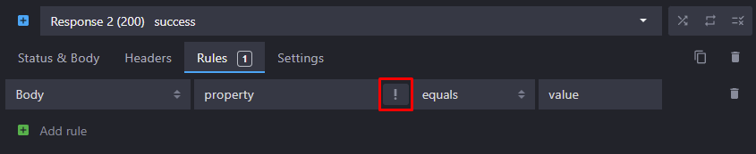 You can now invert the response rules' operators by clicking on the toggle button with an exclamation mark: