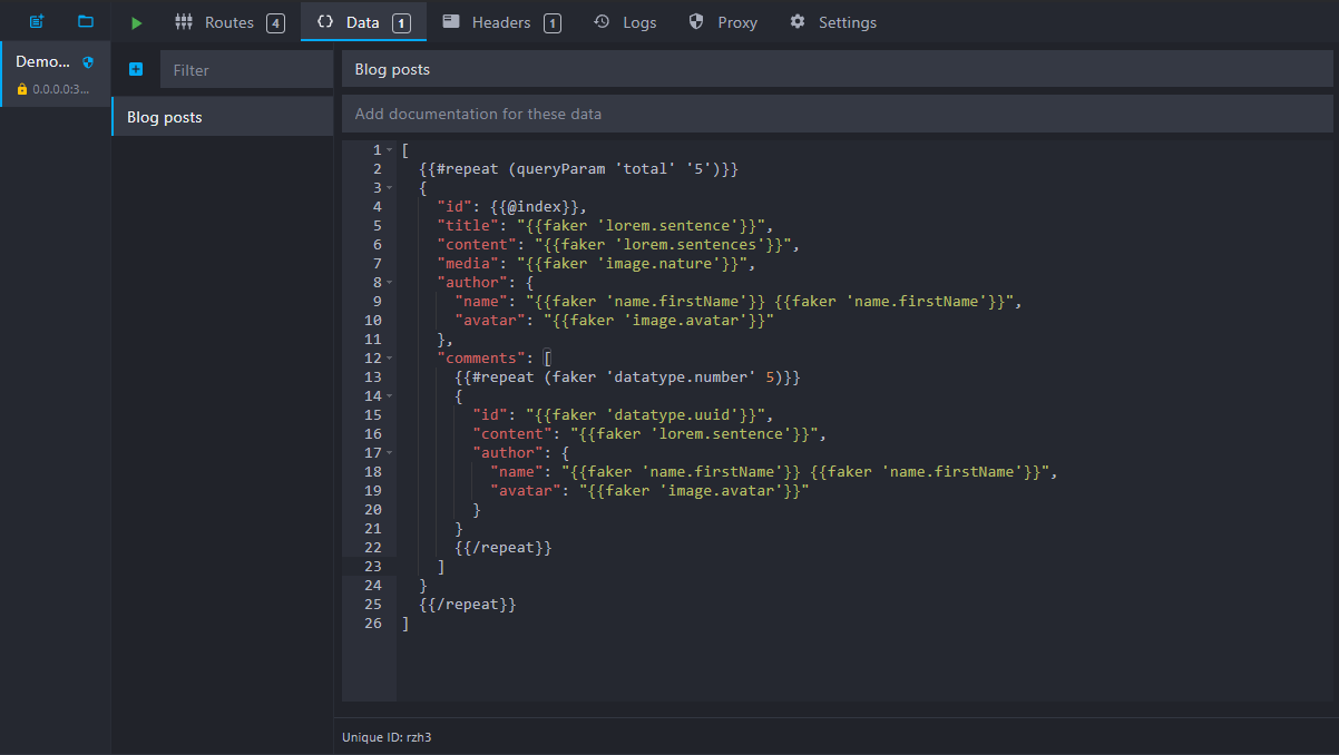 faker templating helper is no longer stringifying arrays and objects. It can now be used with other helpers like each. (Issue #880)data and dataRaw helpers do not return the full data bucket anymore when nothing was found at a specific path. (Issue #918)You can now organize your routes into folders and sub-folders: