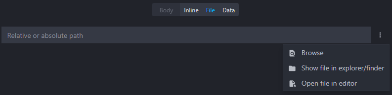 We added a new menu next to the external file path input that allows you to quickly view the file in the explorer/finder or open it in your default editor: