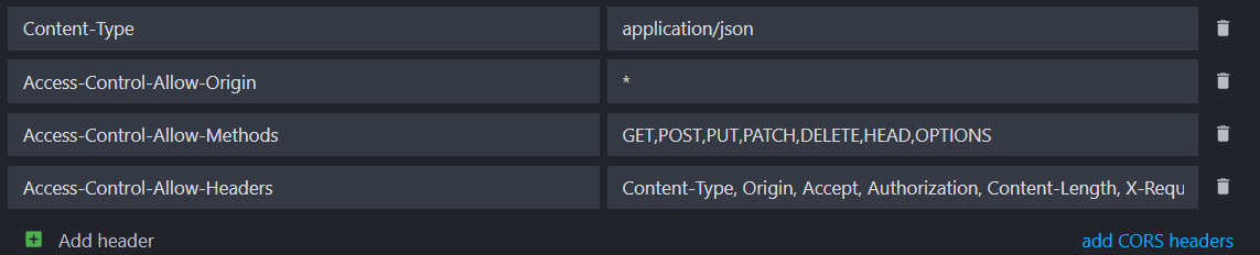 The CORS headers are now added by default to all new environments. This should help you to avoid CORS issues when testing your APIs.