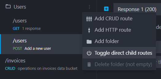 A new entry to the folder's dropdown menu allows you to toggle (enable/disable) all the routes in a folder at once: