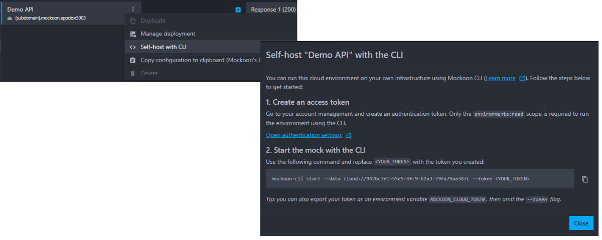 Team and Enterprise Mockoon Cloud subscribers can now self-host Mockoon Cloud environments they collaborate on using Mockoon CLI.