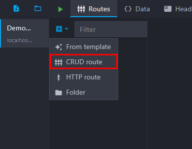 The first step is to create a new automated CRUD route. To create a CRUD route, click on the "CRUD route" entry in the add route menu: