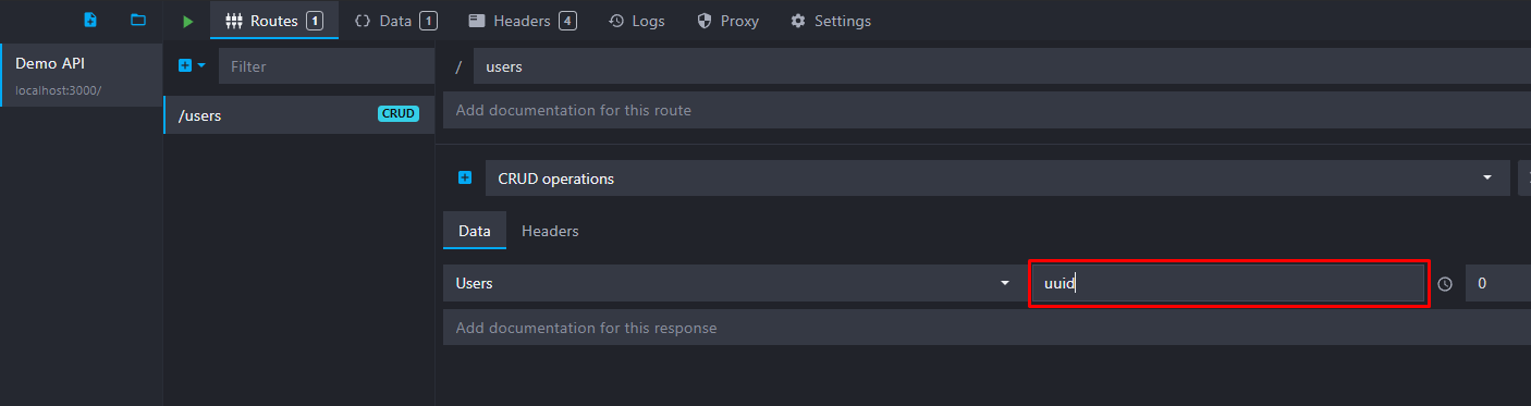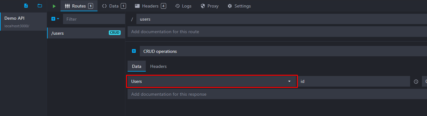GET /users to list all users of our bucket.GET /users/:id to get the user with a specific ID.POST /users to add a new user to the data bucket array.PUT /users/:id to update the user with a specific ID.DELETE /users/:id to delete the user with a specific ID.📘 More routes are created by CRUD endpoints, and many options are available: sorting, pagination, etc. Head over to our CRUD routes documentation for more information.