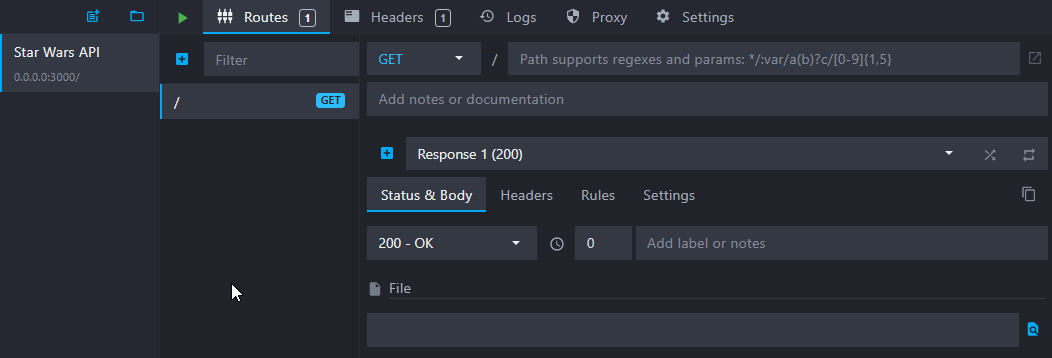 The first step is to create a new API in Mockoon or use one you already have.